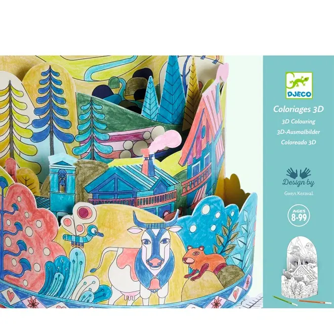 De 3D kleurplaat On top of the world van Djeco is meer dan alleen een kleurplaat. Kinderen vanaf 8 jaar kunnen eerst lekker kleuren, daarna alles zelf in elkaar zetten en zo hun eigen mini-landschap maken.