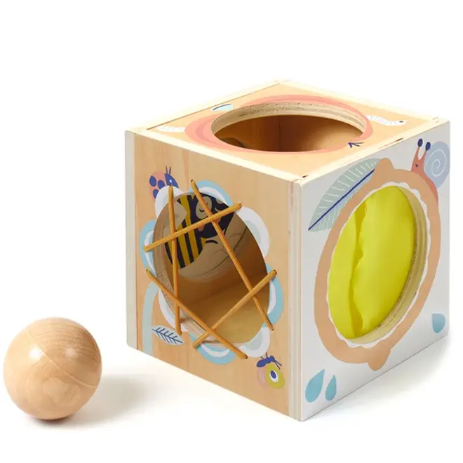 Met vier verschillende manieren om de bal te verstoppen blijft dit speelgoed steeds opnieuw boeien. Je kleintje kan de bal door elastieken duwen, achter een deurtje verstoppen, door een groot gat laten vallen of door een elastisch doek laten verdwijnen. De grote openingen zijn speciaal ontworpen zodat kleine handjes er makkelijk bij kunnen.
