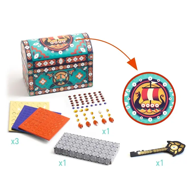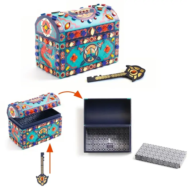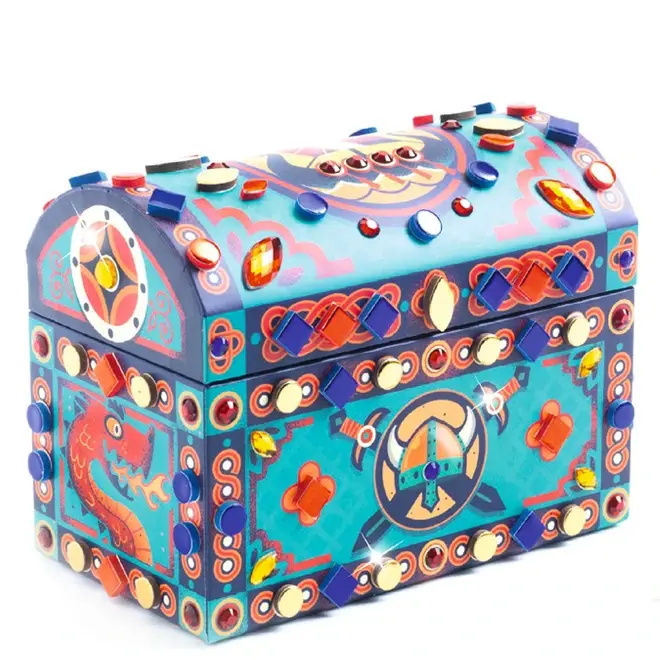 Met de Super Treasure knutselset van Djeco versieren kinderen hun eigen stoere schatkist in ridder thema. De metallic mozaïekstickers maken het tot een kostbare schatkist. Alle stickers zijn zelfklevend, dus makkelijk aan te brengen zonder knoeien.