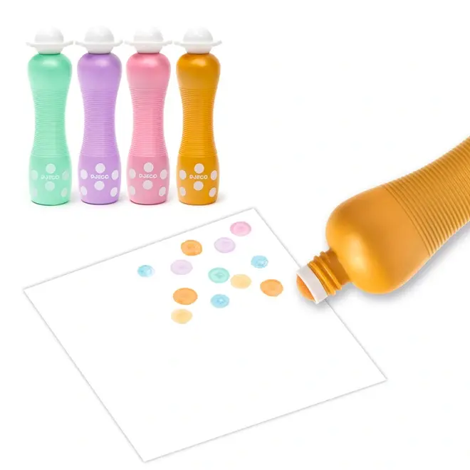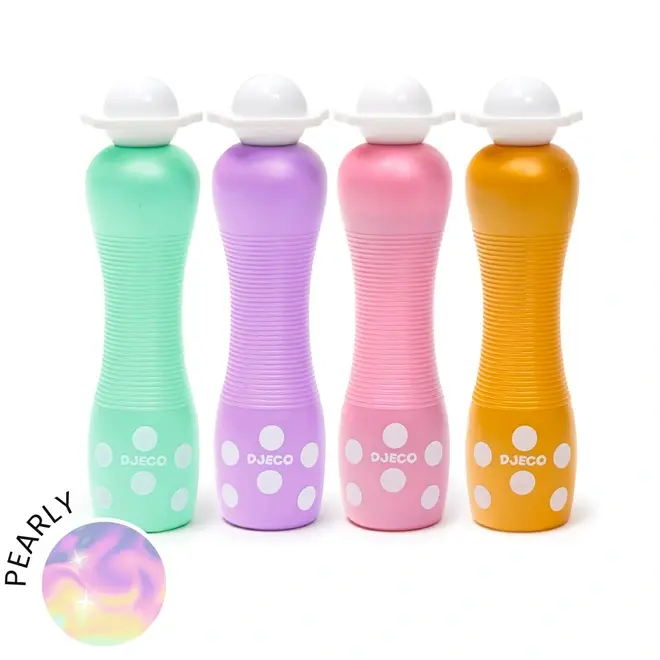 Deze schuimstiften pearly van Djeco zijn echt top als je kind van tekenen en knutselen houdt. Je maakt er van die leuke grote stippen mee die een beetje glanzen, echt zo’n parelmoer effect.