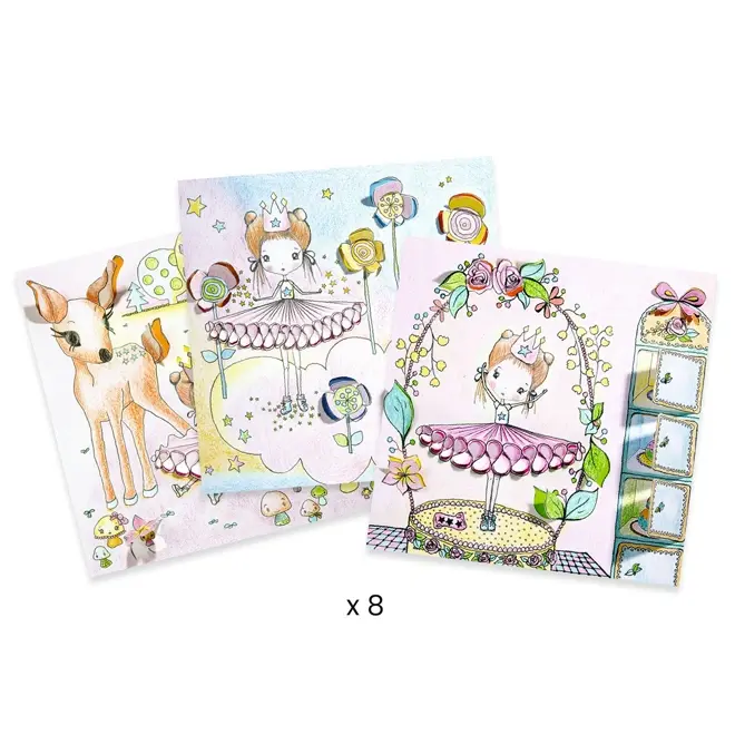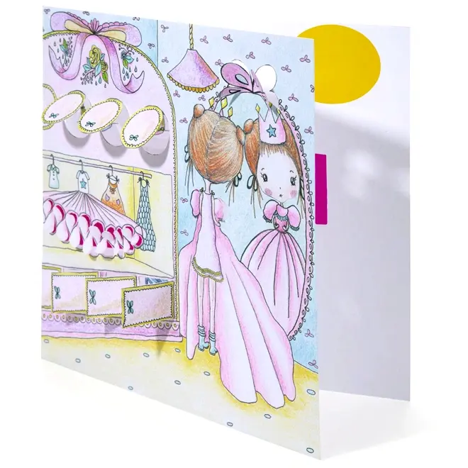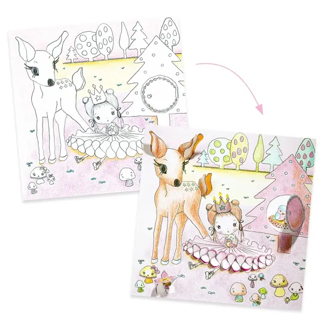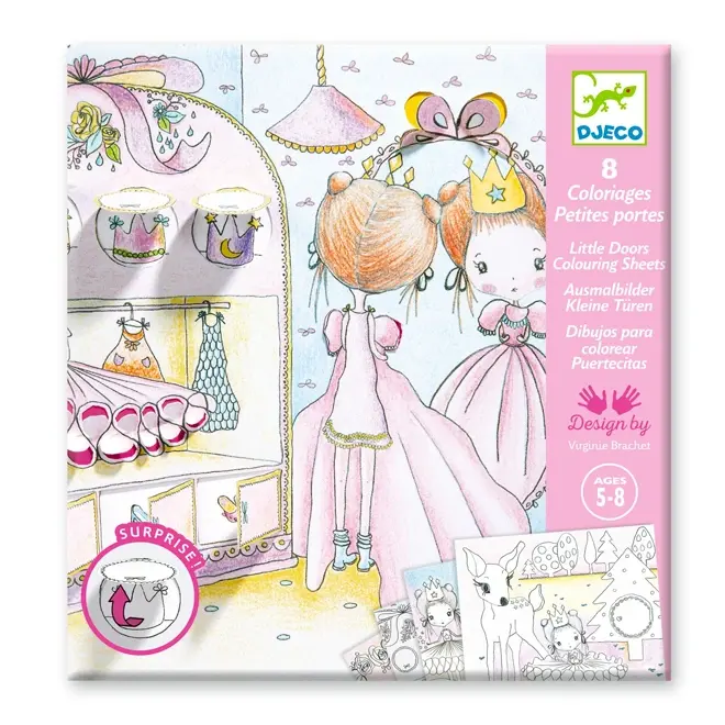 De kaarten hebben flapjes en fijne uitsparingen, waardoor er een leuk 3D-effect ontstaat tijdens het kleuren. In de set zitten acht dubbele kleurkaarten, met steeds weer iets nieuws om te ontdekken achter elk deurtje.