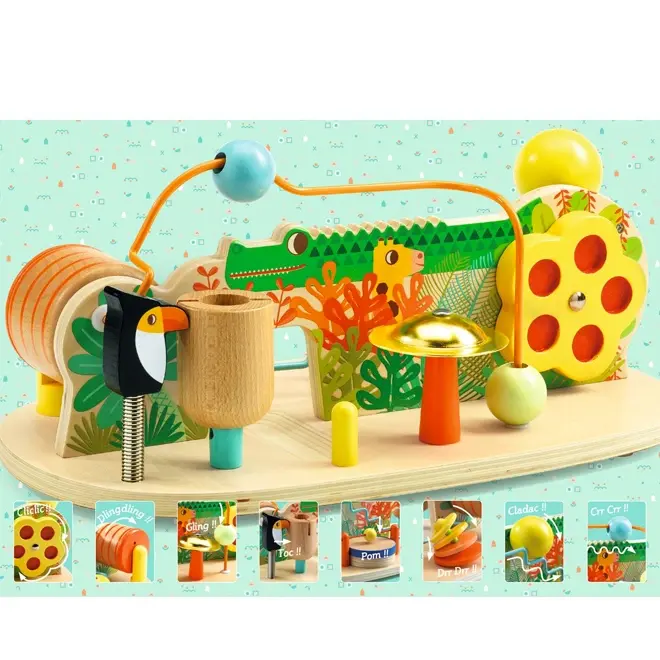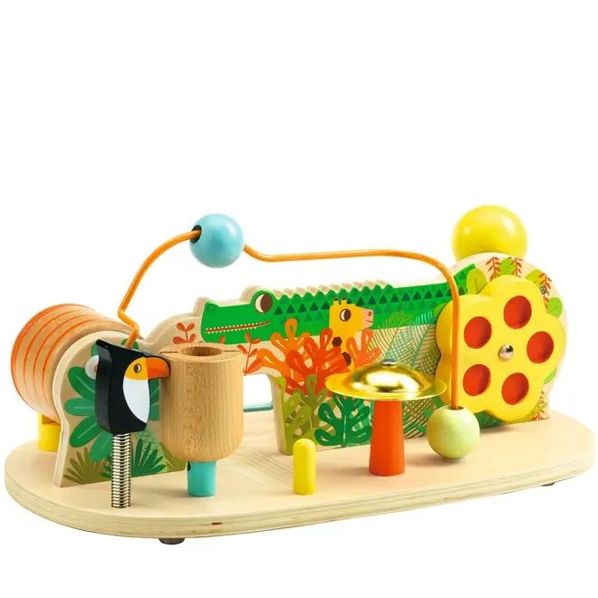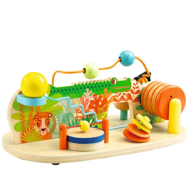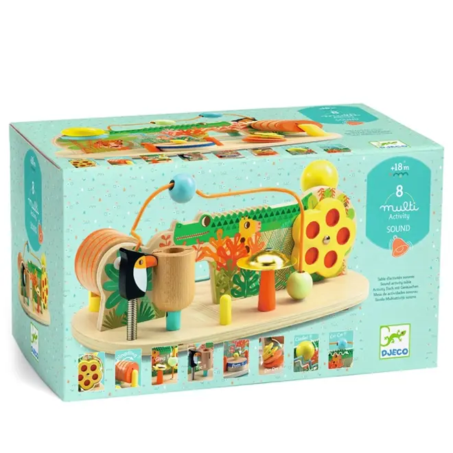 Djeco Multi Sound is een geweldig geluidenbord vol verrassingen. Kinderen kunnen rondom de tafel spelen en acht verschillende geluiden ontdekken. Van de papegaai die 'tok tok' zegt tot de knikker die langs de krokodil rolt met een 'tak tak tak'.