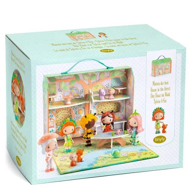 Midden in het bos staat het gezellige huisje van Sylvia en haar vosje Fox. Deze schattige speelkoffer van Djeco is eigenlijk een volledig tiny house, gebouwd rond een boom.