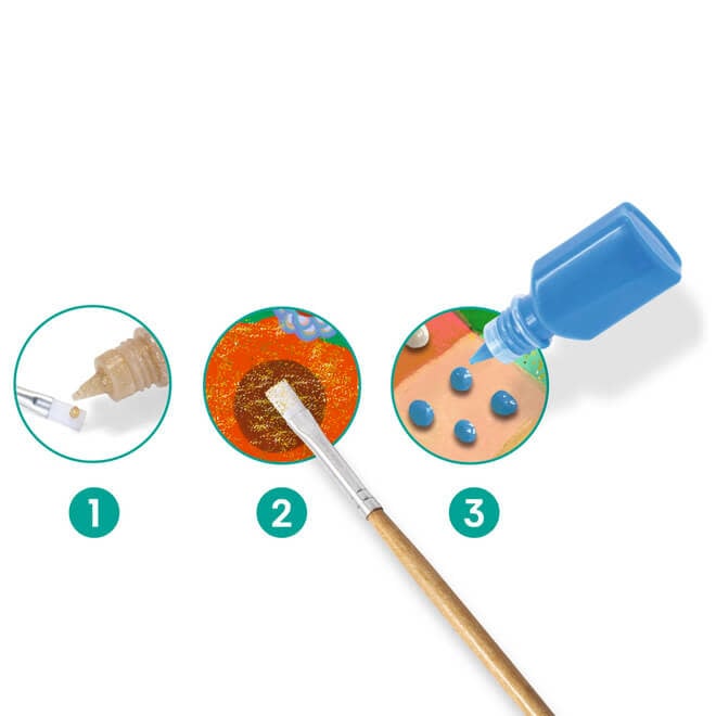 De verf heeft een speciale textuur waarmee je reliëf kunt maken. De kleine flesjes verf zijn gemakkelijk vast te houden en hebben een handige applicatietip, zodat je precies kunt schilderen waar je wilt.