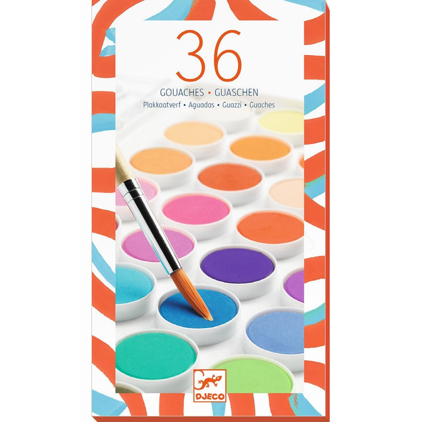 Wees een echte kunstenaar en maak de mooiste schilderijen met dit grote waterverf set van het merk Djeco. Het verfpalet bevat 36 verschillende kleuren en een kwastje.