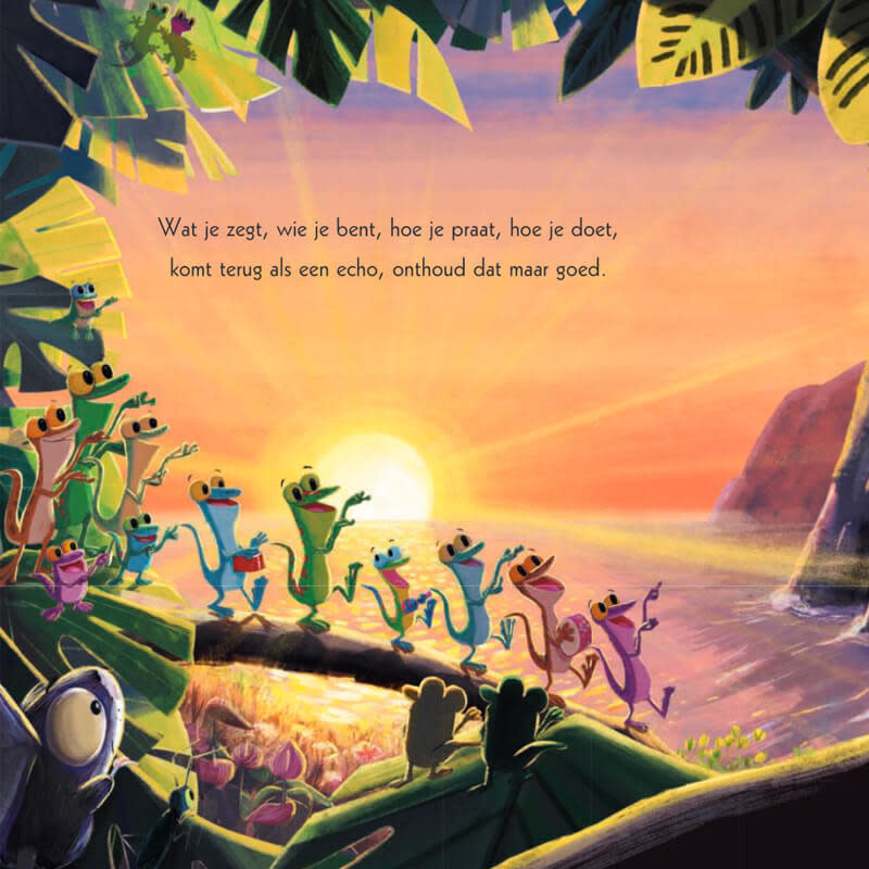 'Gekkie de gekko' is een tropische kleurexplosie in een prentenboek! Elk prentenboek dat Bright en Field samen maken is een fabelachtig feestje vol kleur en muzikaal rijm. En ook dit verhaal heeft een subtiele boodschap: je krijgt wat je geeft.