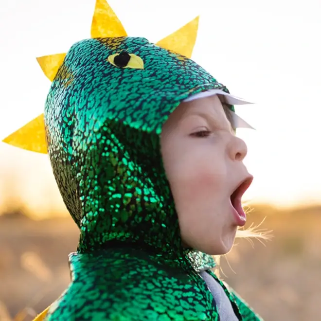 Deze drakencape van Great Pretenders is een fijne verkleedcape voor kleine draken- of dinoliefhebbers van 2-3 jaar. Hoe schattig (en stoer!) zal het zijn om je kleine peuter hierin te zien lopen?
