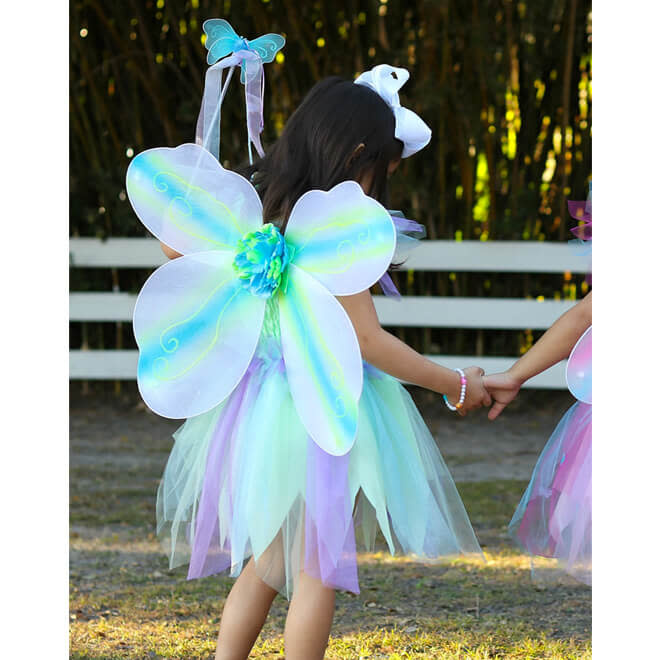 De schattige 4-delige vleugels zijn zeer comfortabel om te dragen omdat satijn bedekte elastische bandjes hebben. De bijpassende toverstok maakt de look compleet!