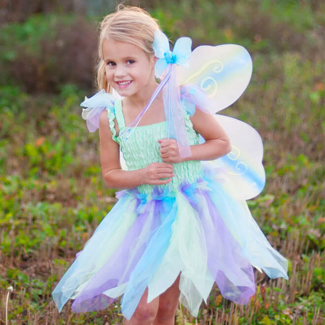 Great Pretenders vlinderjurk, vleugels en toverstaf is een 3-delige set die een klein meisje zal omtoveren in een prachtige fee!