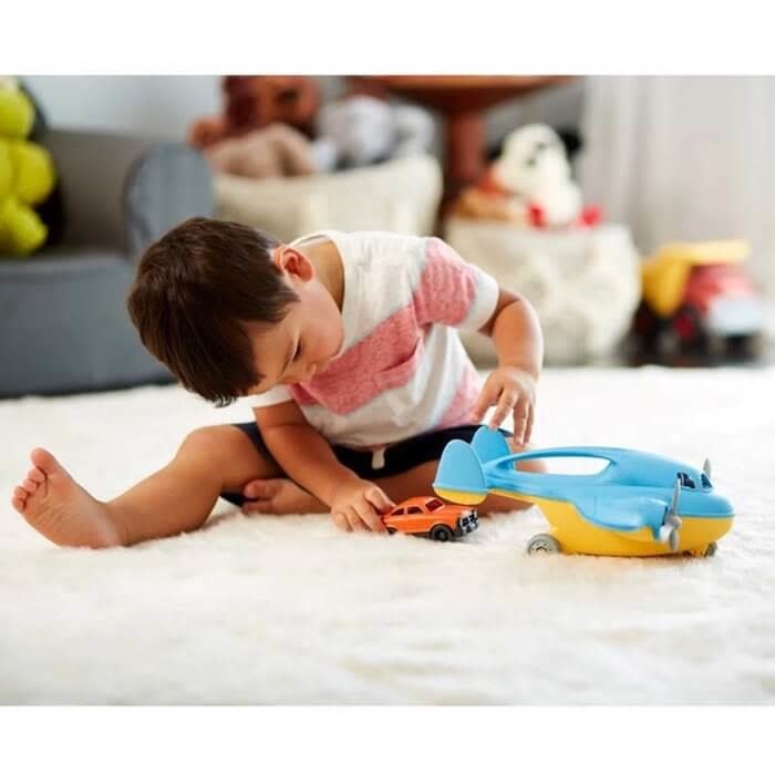Vlieg door de wolken met dit Green Toys vrachtvliegtuig! Het vliegtuig is licht en goed vast te grijpen voor kleine handjes. De auto kan via de laatklep in- en uitgeladen worden. Hij is makkelijk schoon te maken, want hij kan gewoon in de vaatwasmachine.