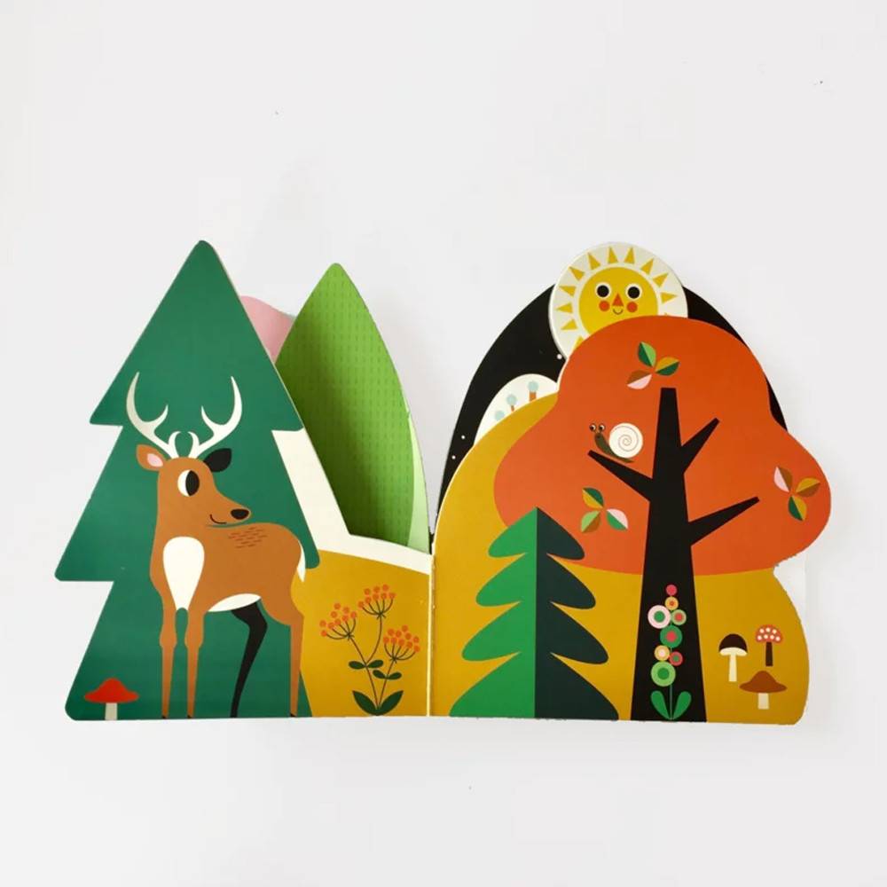 In dit prachtige boekje 'In het bos' heeft elke dikke kartonnen pagina heeft een andere vorm. De pagina's van dit leuke, creatieve boekje hebben de vorm van verschillende soorten bomen. De pagina's worden steeds een slag groter, waardoor je vanaf de voorkant het hele bos kunt zien. En het boekje kan gezellig als thema of sfeermaker op tafel of een plank worden gezet!