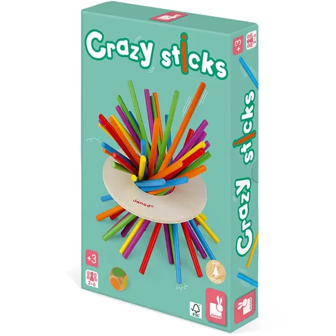 Crazy Sticks is een echt uitdagend spel met kleuren voor kinderen van 3 jaar en ouder. Met dit spel ontwikkelen kinderen hun fijne motoriek en strategisch denken. Ideaal voor een regenachtige dag met het gezin of om even lekker druk te zijn voor het eten.
