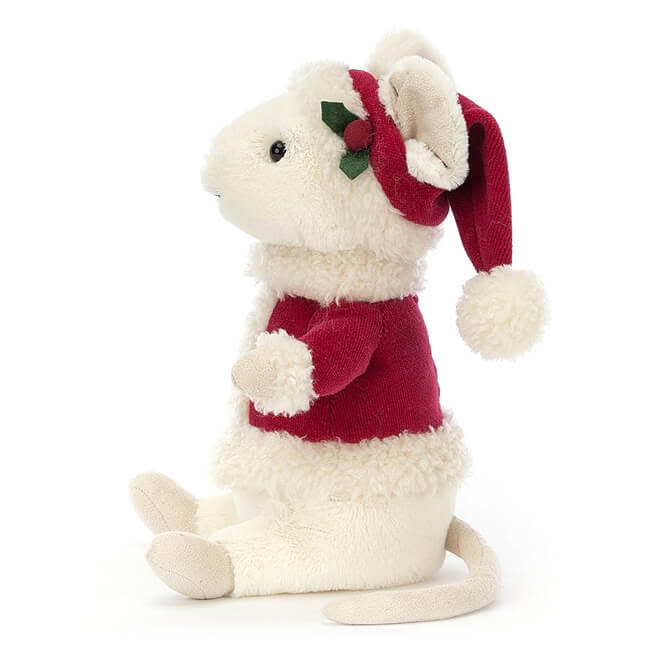 Merry Christmas! Jellycat Merry Mouse brengt je zeker het kerstgevoel. De vrolijke muis heeft een kerstmuts en rood jasje aan; hij lijkt zo uit een kerstfilm te komen!
