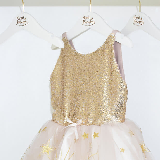 De Glam Party Gold Dress van het Canadese merk Great Pretenders is een prachtige gouden jurk met pailletten! De gouden prinsessenjurk is glamoureus en betoverend en zal je bij elke speciale gelegenheid als een ster zal laten stralen.