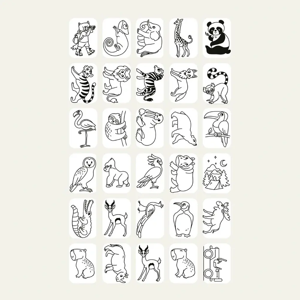 De illustraties zijn duidelijk en vriendelijk, waardoor elk kaartje fijn is om te gebruiken. Compatibel met de KIDYDRAW-MINI (niet inbegrepen).