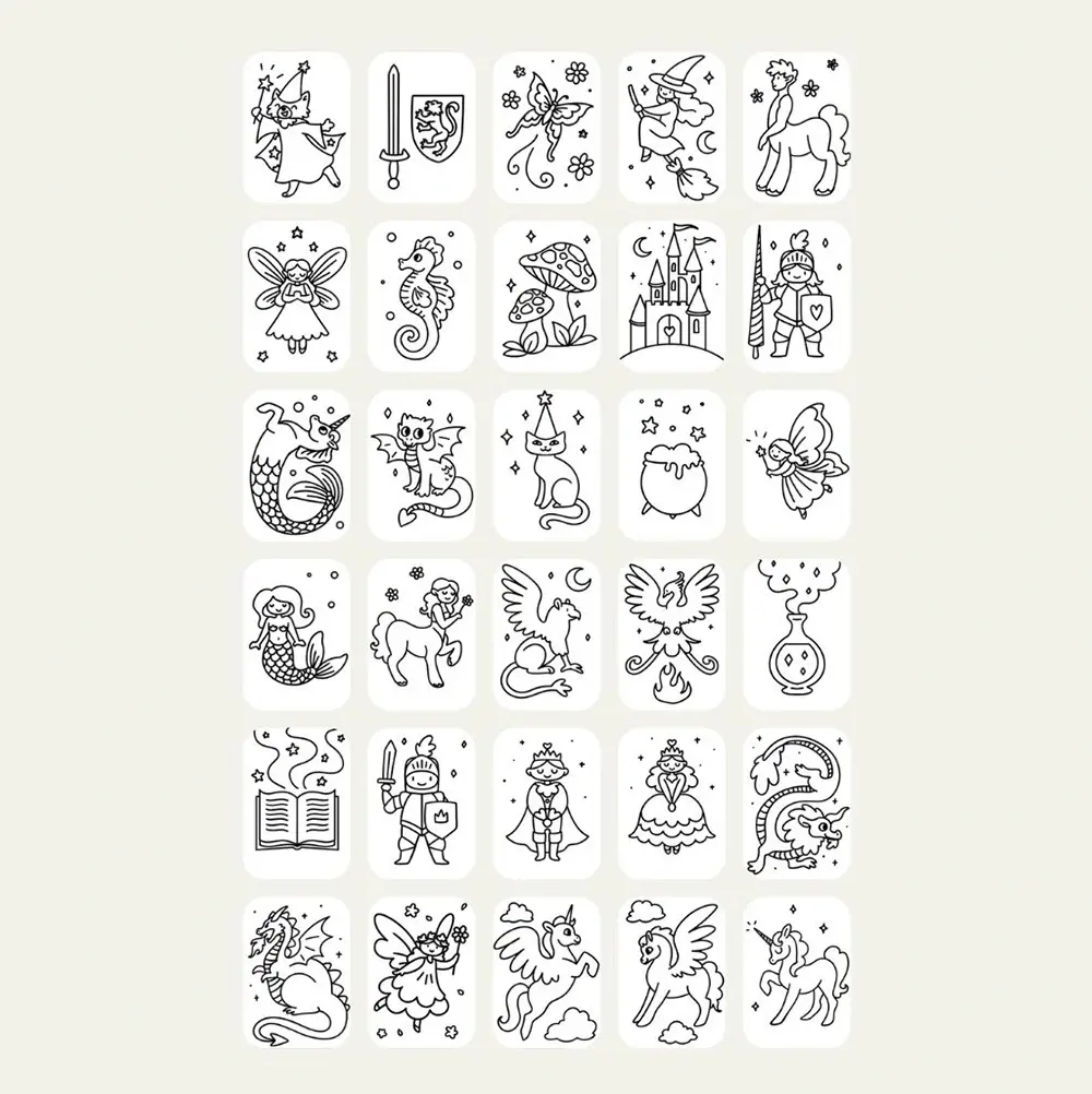 Deze refill bevat 60 nieuwe overtrekmodellen met sprookjesscènes en dieren. Kinderen kunnen op hun eigen tempo tekenen en zelf kleine verhaaltjes bedenken.