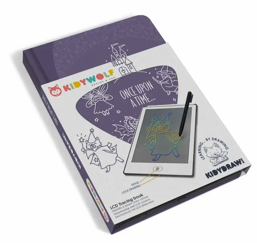 Met de KIDYDRAW-MINI ‘Once Upon a Time’ kan je kind op een leuke en makkelijke manier tekenen. Dit tekenbord heeft een LCD-scherm van 8,2 inch en bevat 30 illustraties om over te trekken met sprookjesthema.