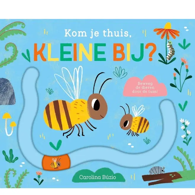 Help vier babydieren de weg naar huis te vinden in het peuterboek 'Kom je thuis, kleine bij?'. Peuters kunnen zelf de paden volgen met behulp van de schuifjes. Zo begeleiden ze de bij, het lieveheersbeestje, de slak en de worm terug naar hun huis.