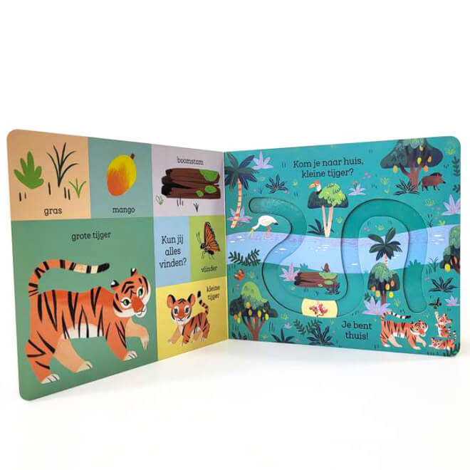 Ga op ontdekkingsreis door de jungle en help vier babydieren om hun huis terug te vinden in 'Kom je thuis, kleine tijger?'.