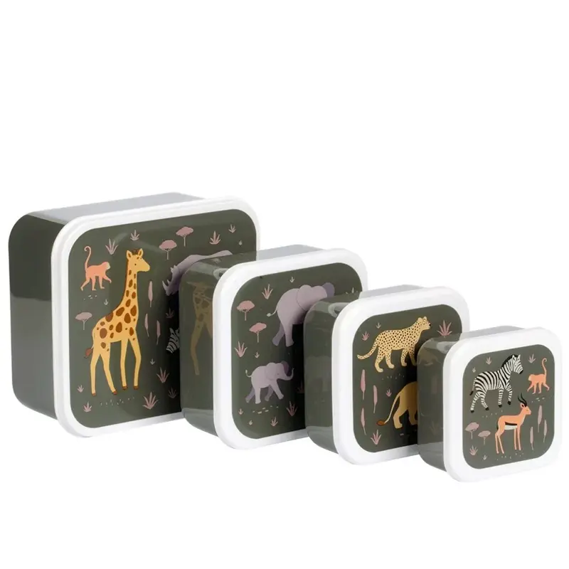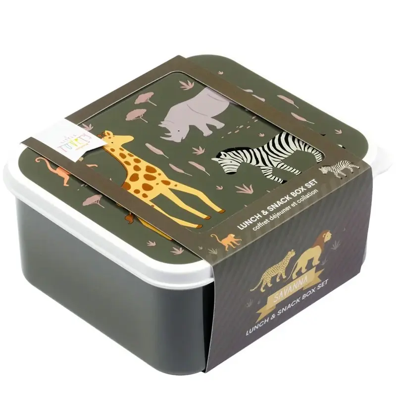 Met de A Little Lovely Company Lunch & Snack Box Set in Savanne wordt lunchen een stuk leuker en georganiseerder. De set bestaat uit vier doosjes in verschillende maten, elk voorzien van schattige savanne dieren zoals zebra’s, leeuwen en giraffen.