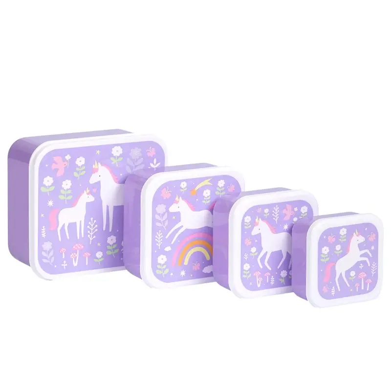 Met de Unicorn Dreams lunch- en snackbox set van A Little Lovely Company wordt elke lunch een beetje magisch. Deze lichtpaarse set bestaat uit vier handige doosjes met schattige eenhoorns.