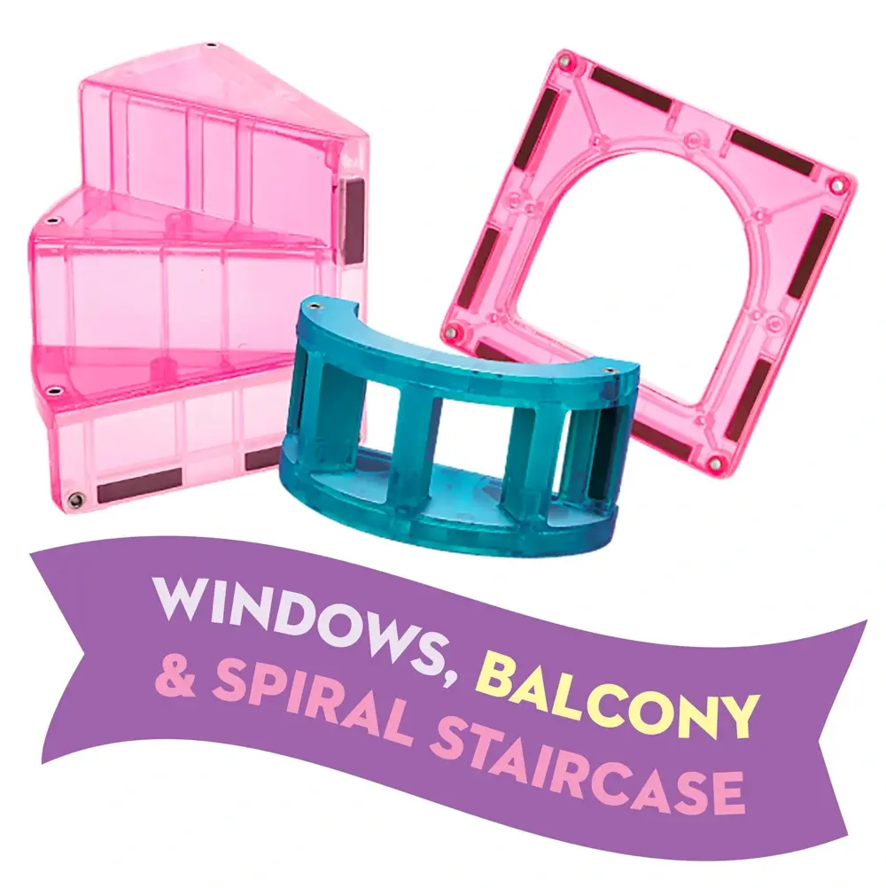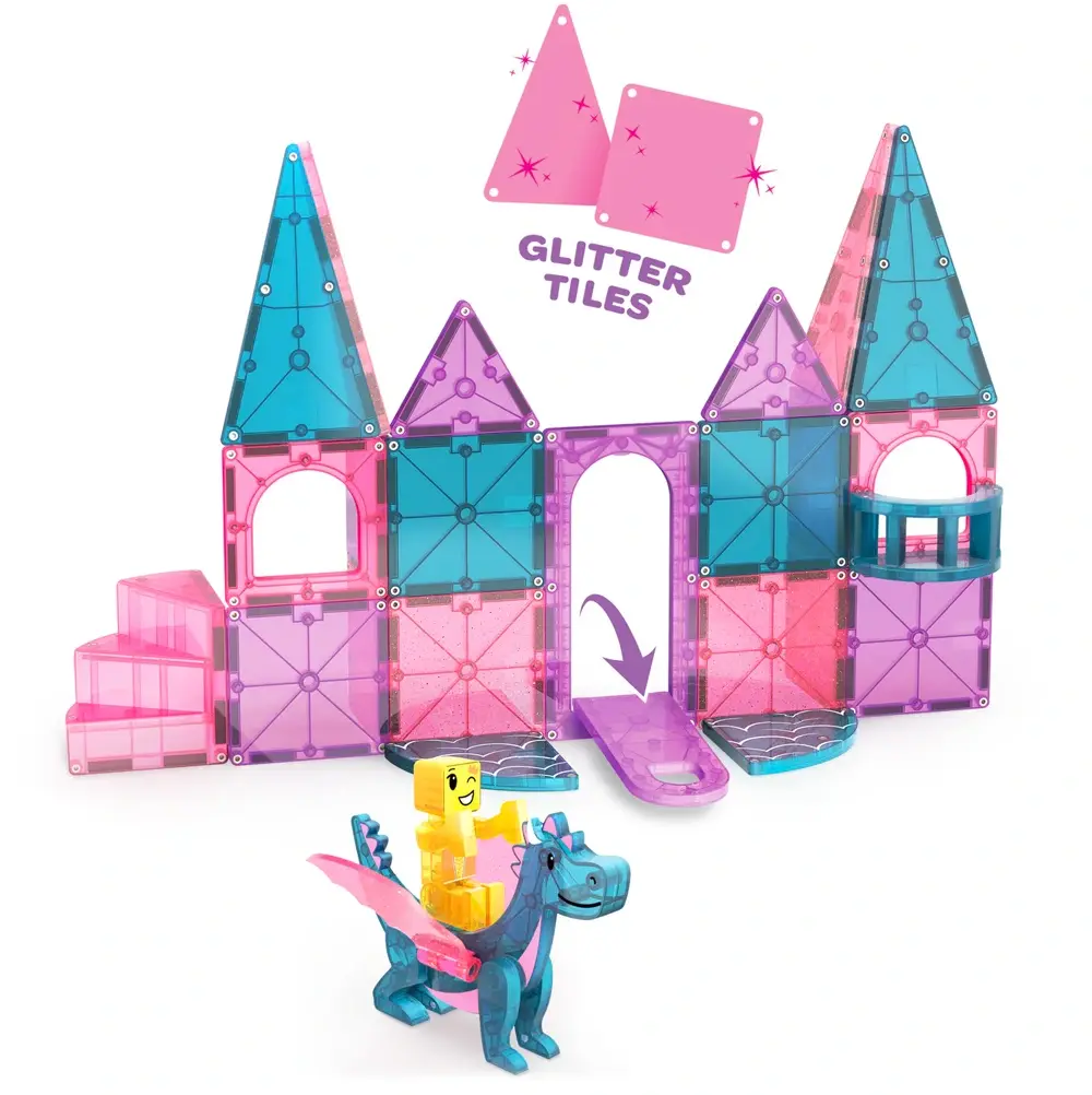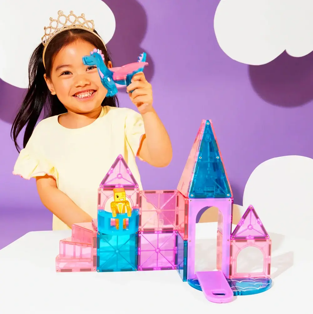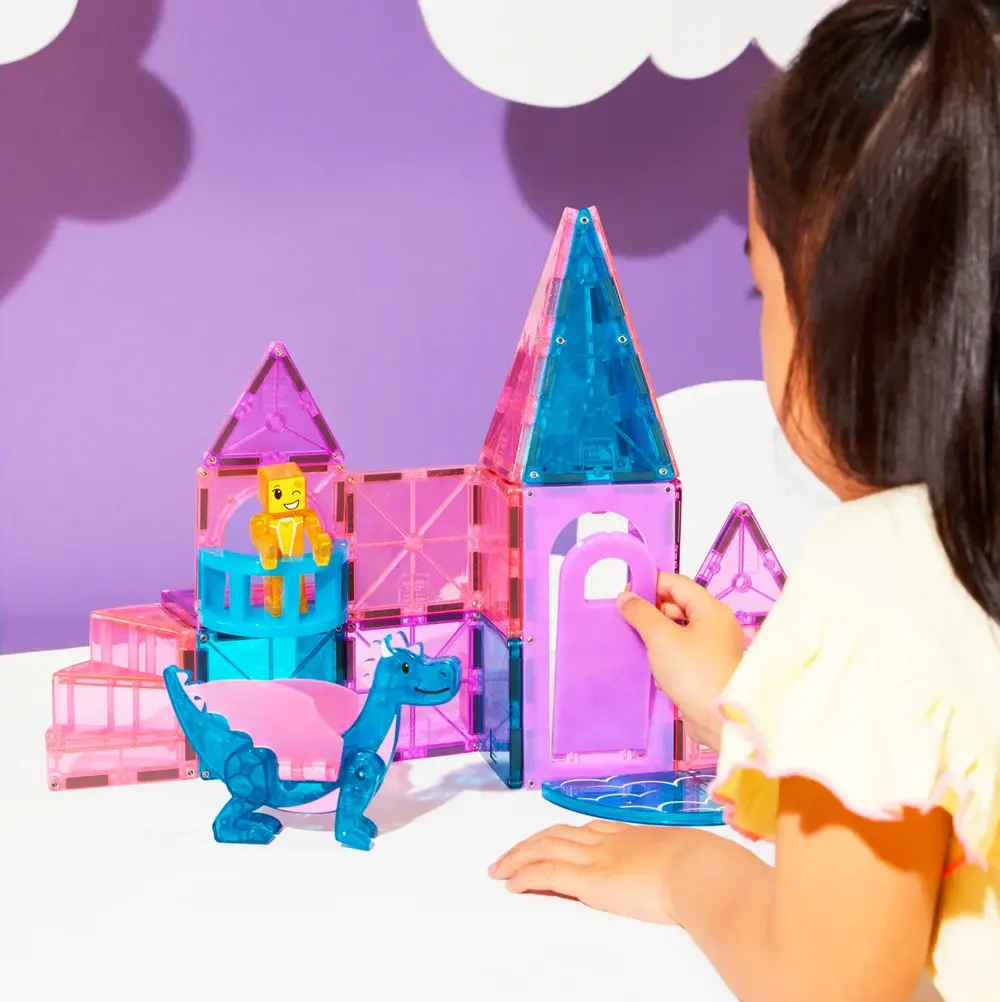 Met de Magna-Tiles Castle set bouwen kinderen hun eigen kasteel, compleet met een werkende ophaalbrug, balkon en wenteltrap.