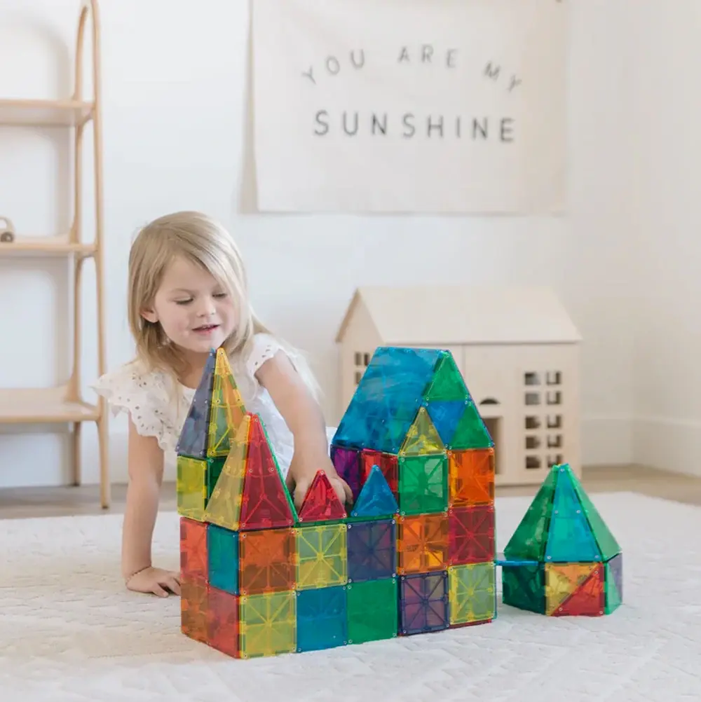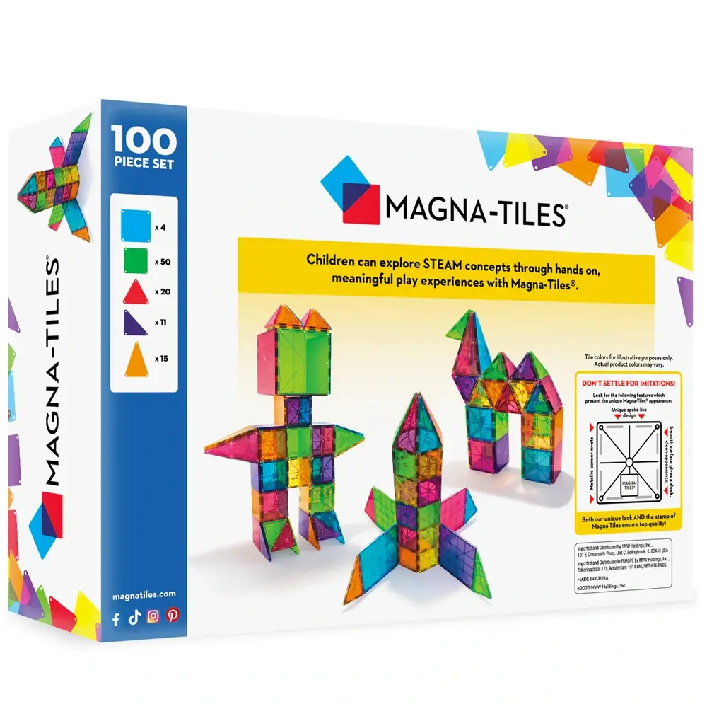 De Magna-Tiles Clear Colors set is de echte klassieker onder het magnetische speelgoed. Met maar liefst 100 transparante onderdelen in heldere kleuren kunnen kinderen bouwen wat ze maar bedenken.