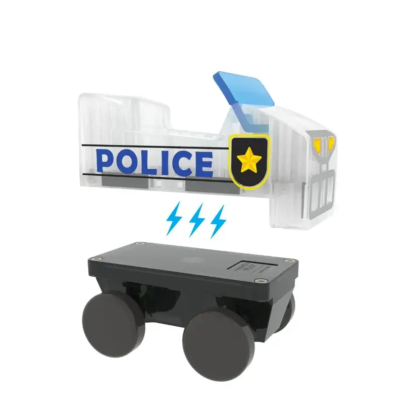 Het microchassis vormt de basis: maak er een politieauto van, een skateboard of zelfs een klein treinstel. Met de ATV-top krijgt je voertuig meteen een stoere uitstraling, klaar om op pad te gaan.