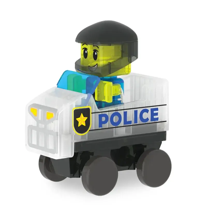 De set bevat ook een mix & match politiefiguur, zodat kinderen hun eigen verhalen en situaties kunnen bedenken. Zo ontstaat er telkens opnieuw een nieuwe manier om te bouwen en te spelen.