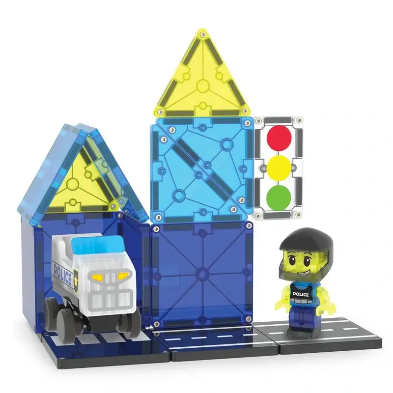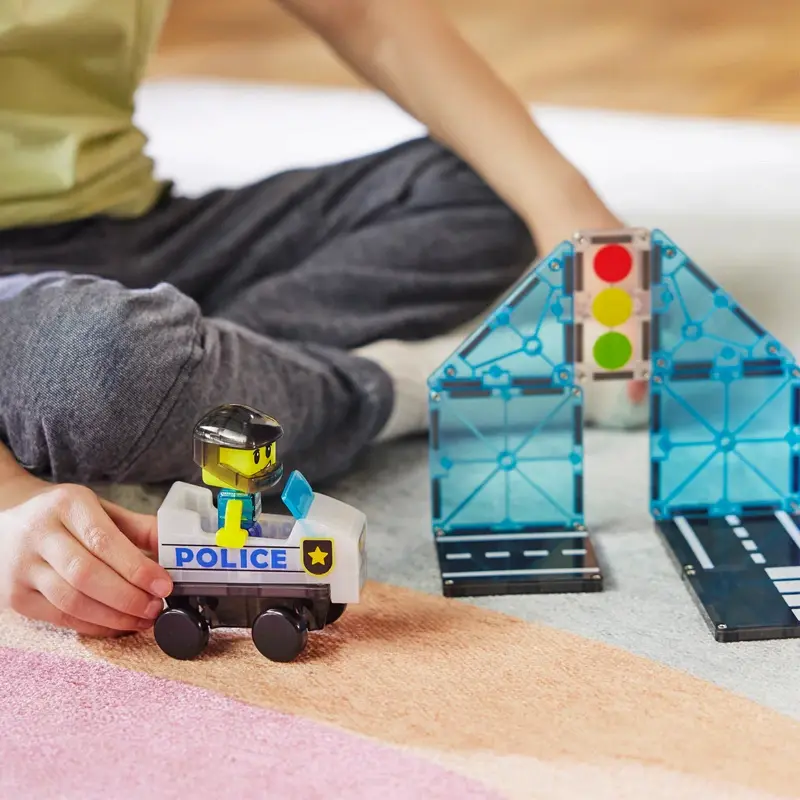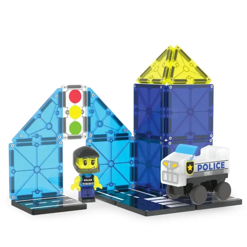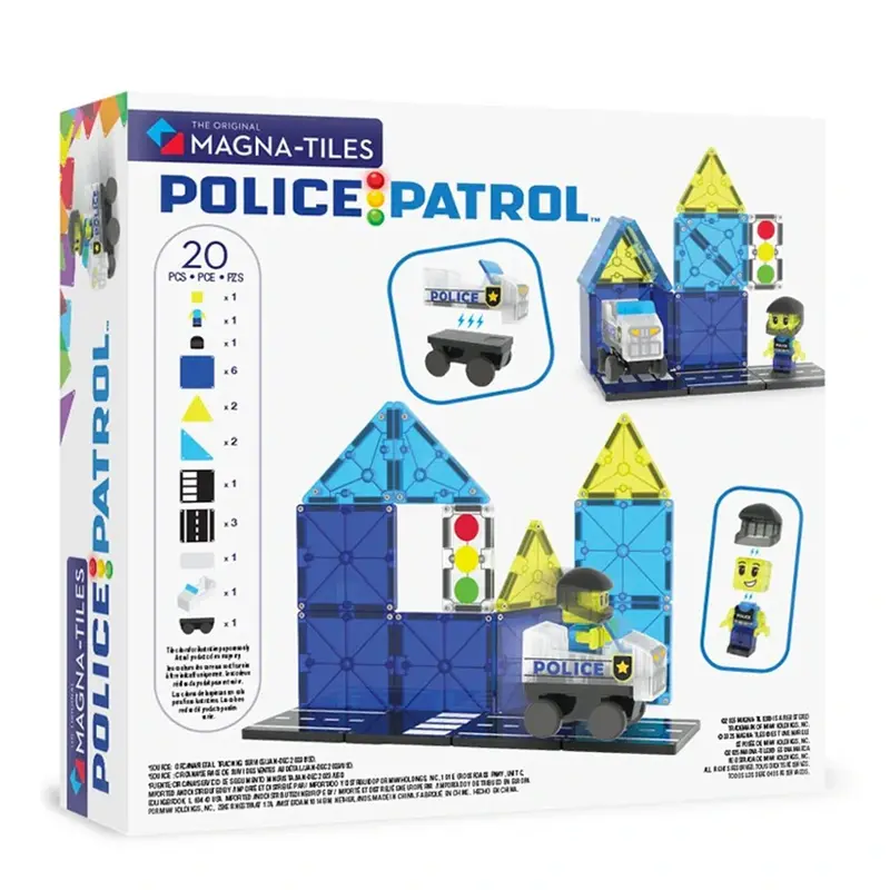 De Magna-Tiles Police Patrol is een leuke uitbreiding op je bestaande Magna-Tiles wereld, maar ook los goed te gebruiken. Met 20 magnetische onderdelen bouw je eenvoudig voertuigen voor elke missie.