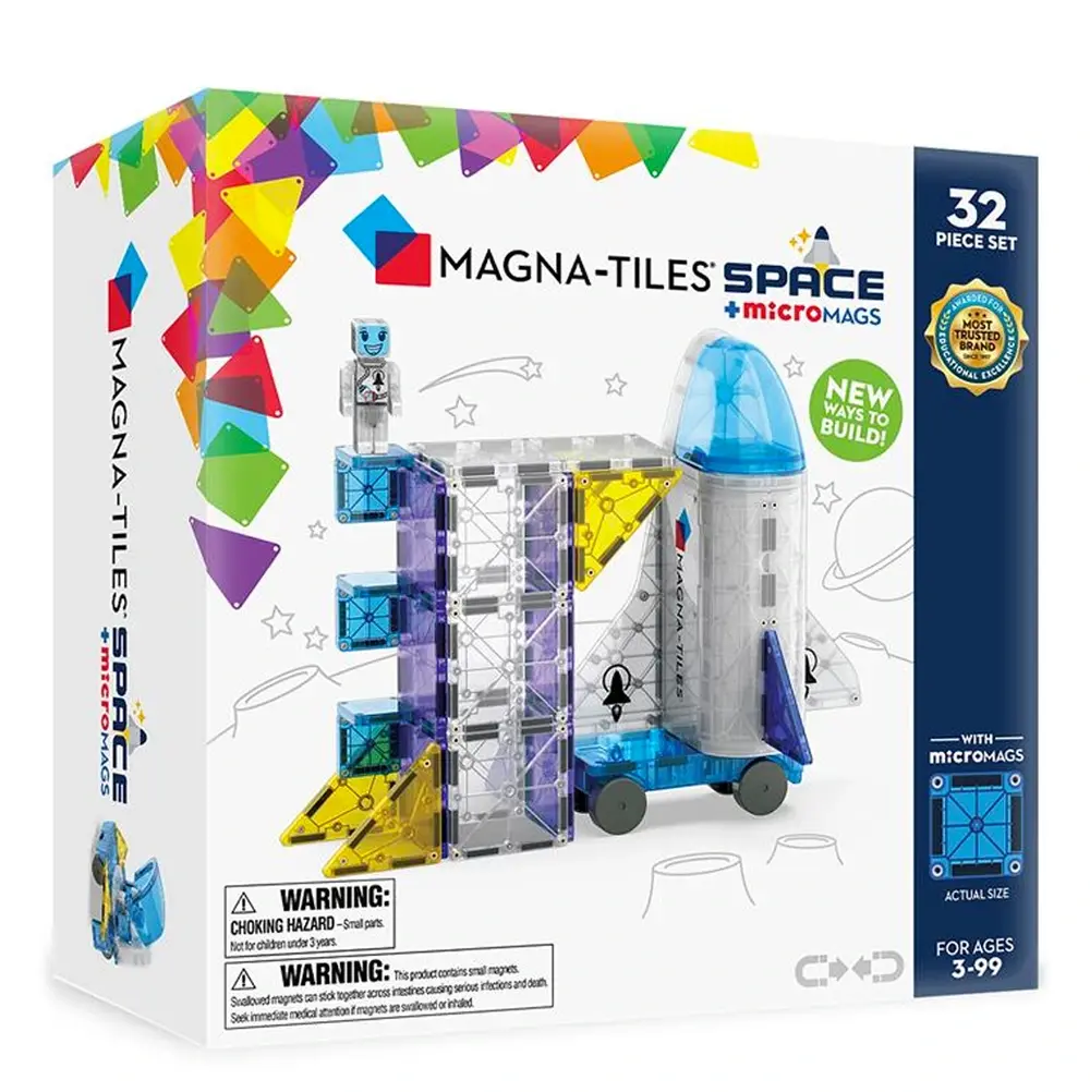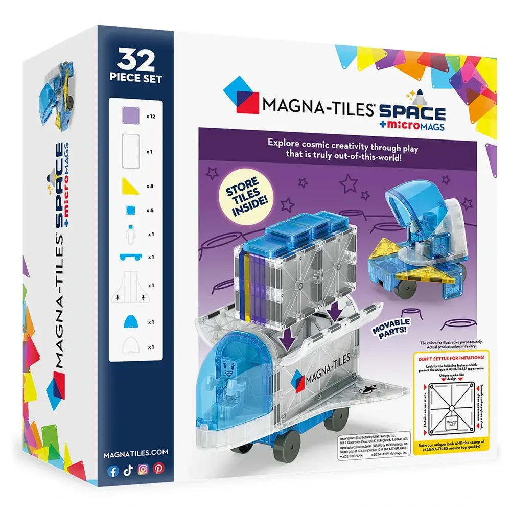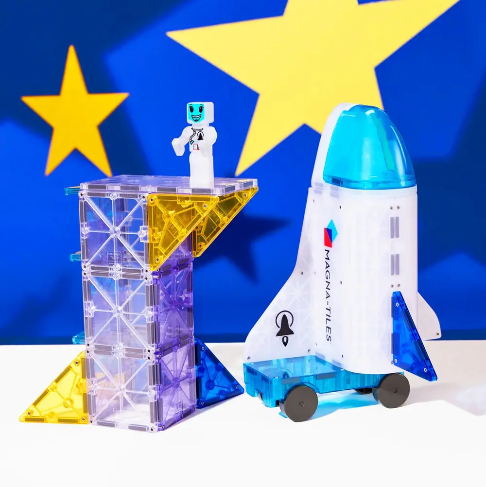 Met de Magna-Tiles Space set gaat spelen ineens een stukje verder… de ruimte in. Met 32 magnetische onderdelen bouwen kinderen hun eigen raket, satelliet of zelfs een compleet ruimtestation.