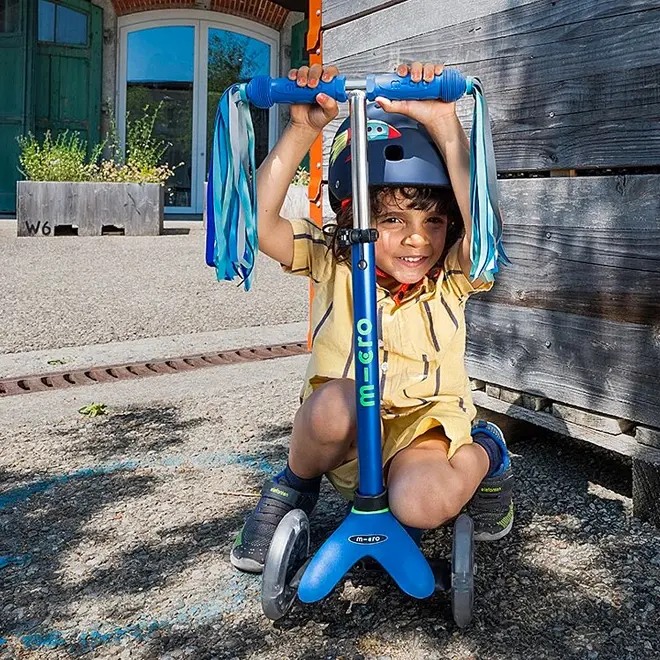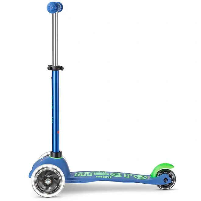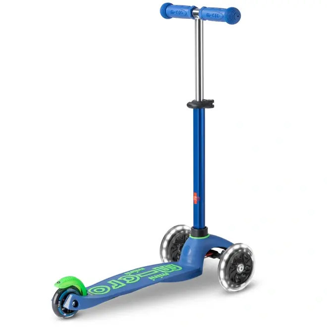 De Mini Micro Deluxe step met LED wielen is een echte top step voor kinderen van 2 tot 6 jaar. Deze blauwe en groene kinderstep combineert veiligheid, plezier en groei in één compact pakket.