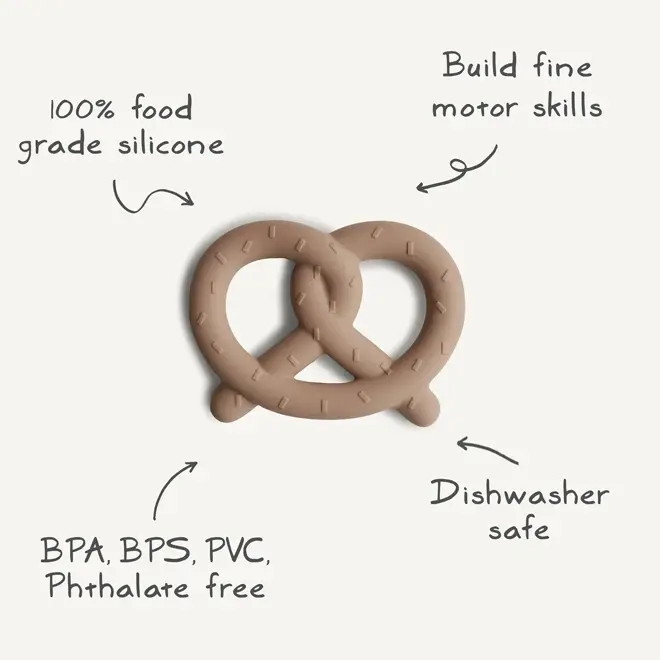 De grappige pretzelvorm ziet er ook nog eens super leuk uit - het is net alsof je baby op een koekje aan het sabbelen is!