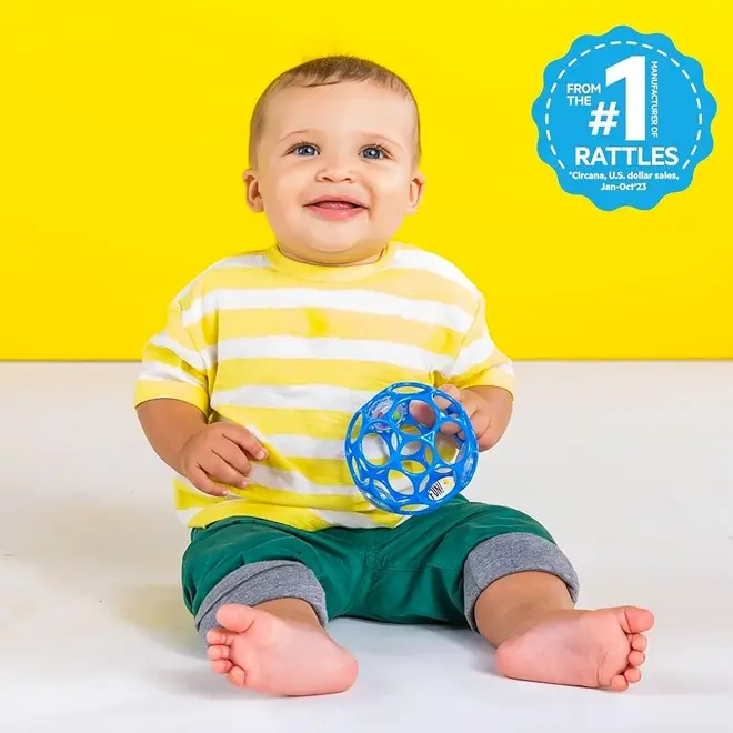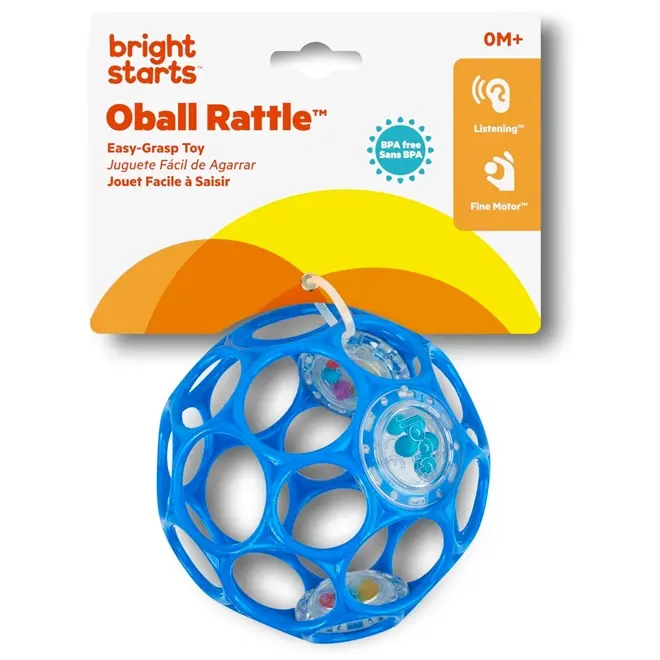 Maak kennis met de Oball Rattle blauw, een rammelaar die perfect in kleine handjes past. Het flexibele materiaal met de karakteristieke Oball openingen nodigt uit tot grijpen en ontdekken.