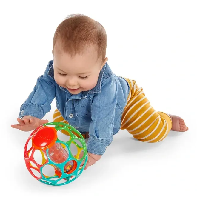 De Oball Rollin' Rainstick Rattle is een fascinerend speeltje dat verschillende zintuigen prikkelt. Deze best wel grote bal (!) combineert het bekende Oball-design met een speciaal regenmaker-effect.