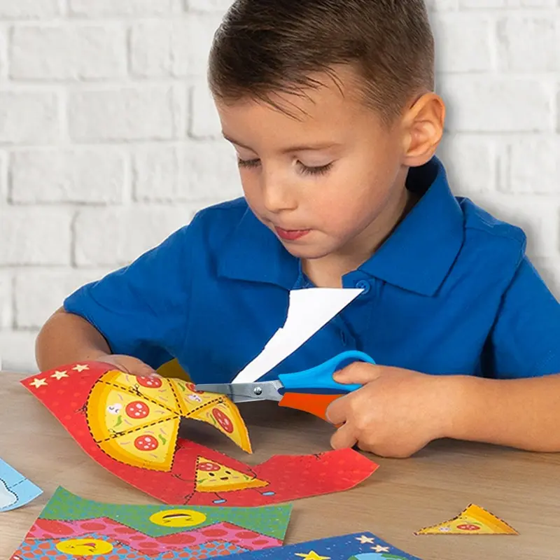 De roestvrije bladen hebben geen scherpe punt, zodat kinderen veilig aan de slag kunnen. Dankzij het formaat ligt de schaar prettig in kleine handen, perfect voor thuis, op school of tijdens een gezellige knutselmiddag.