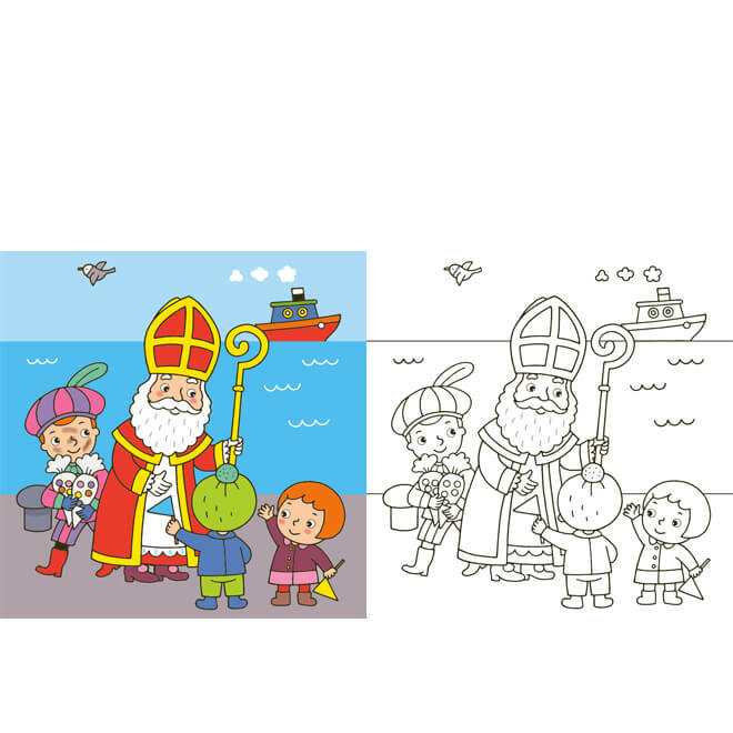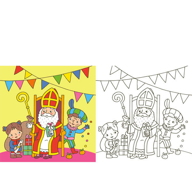 In dit leuke kleurboek vind je een heleboel kleurplaten met Sinterklaas. Pak je kleurpotloden of stiften erbij en geef de Sint en zijn Pieten een mooi kleurtje. Gebruik de kleurvoorbeelden om je tekening in te kleuren of laat je fantasie de vrije loop!