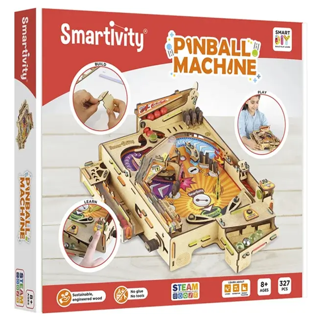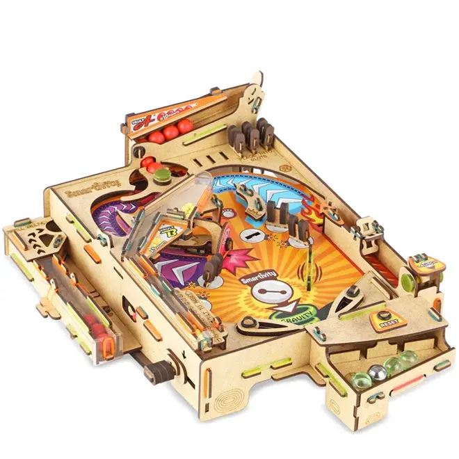 De Smartivity Pinball Machine is een educatieve bouwset waarmee kinderen vanaf 8 jaar hun eigen houten flipperkast kunnen maken.