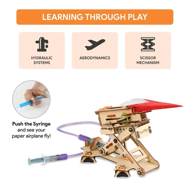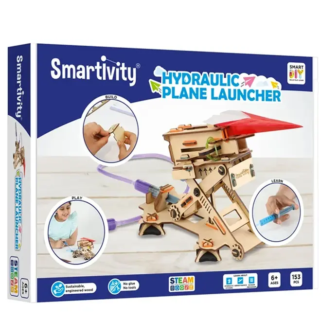 De Smartivity Plane Launcher is een bouwpakket voor kinderen vanaf 6 jaar die dol zijn op vliegtuigen en techniek. Met deze set kunnen jonge uitvinders hun eigen hydraulische lanceerplatform in elkaar zetten.