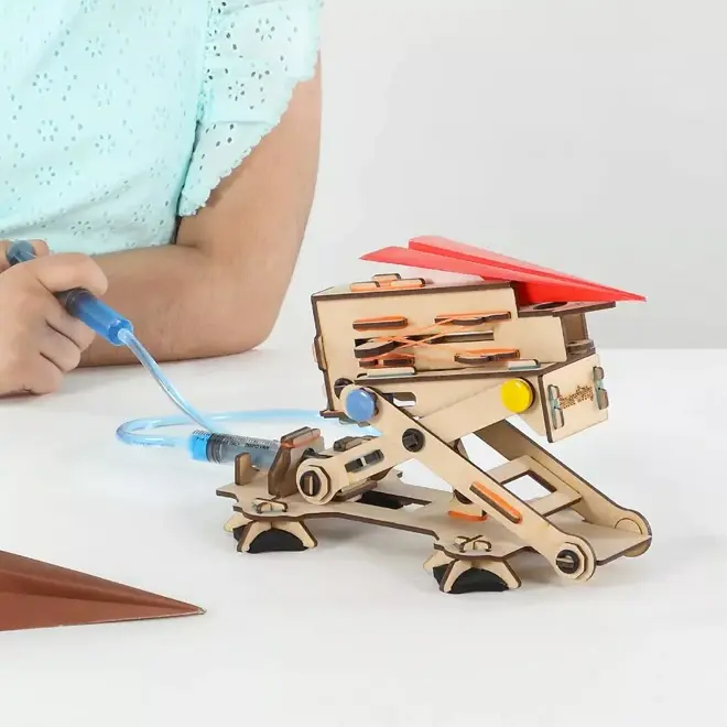 Het bouwproces is eenvoudig dankzij de duidelijke instructies. Kinderen leren spelenderwijs over belangrijke natuurkundige principes zoals hydraulica, schaarmechanismen en aerodynamica. Na het bouwen kunnen ze hun creatie nog verder personaliseren met stiften of verf.
