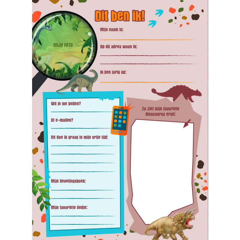 Verzamel allemaal gegevens en weetjes over je beste vrienden met dit coole dino vriendenboek. Super leuk om te bewaren voor later!